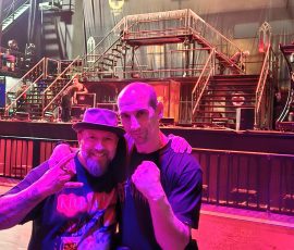 This is a pretty big production. King Diamond have two trucks on the tour carrying their extensive stage set and two busses. We have our bus and trailer and for the German leg, where we are with Angel Witch, they have a splitter too. It just means we have to be careful with when we arrive and where we park. We know what we are doing. We are respectful of the headline band and basically stay out of their way. King Diamond have security guards and we aren’t that tough to be honest.